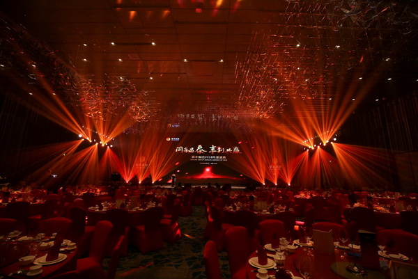 伴隨著耀目的燈光秀以及10位領(lǐng)導(dǎo)的推桿儀式,2018年泰豐年度盛典正式啟動?!苞棑糸L空,翱翔于天地,奮起于懸崖云土之間。厚積薄發(fā),承載夢想,無畏前方險阻,直面未來...”會場話畫外音剛落,一只雄鷹從大屏中沖出,展翅環(huán)繞會場一周為此次盛典拉開了華麗的序幕。