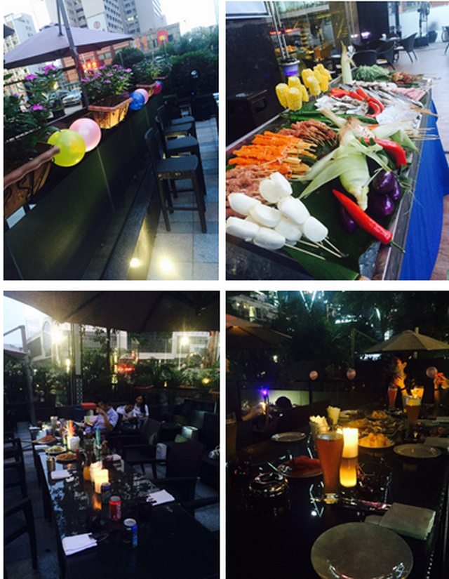 風(fēng)中搖曳的燭光、彩色的氣球、肆意彌漫的燒烤香、讓人迷醉的啤酒無(wú)一不顯露出夜晚的浪漫,同事們歡快的聊著……盡情的享受著此刻的浪漫時(shí)光。